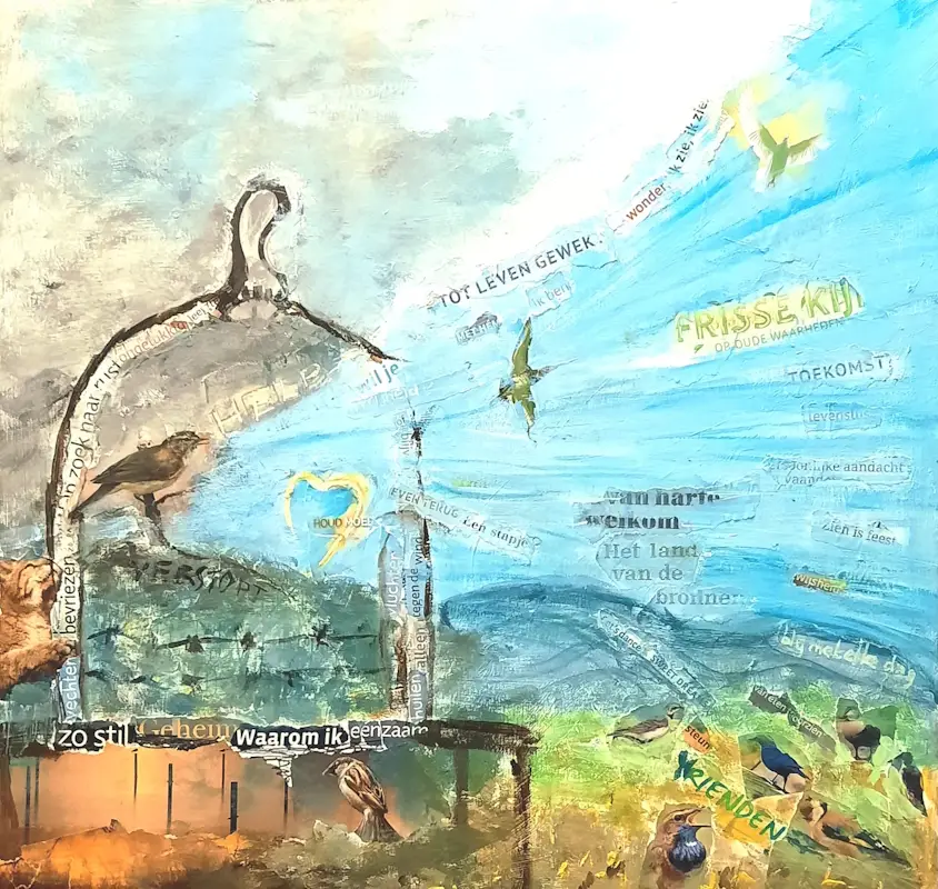 Schilderijen die verhalen vertellen, landschappen waar je in weg kan dromen, collages met een twinkje humor, of bijbel geïnspireerd werk, kijk en geniet.