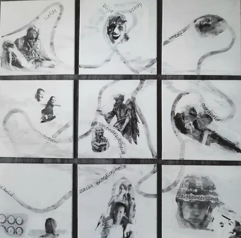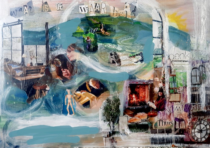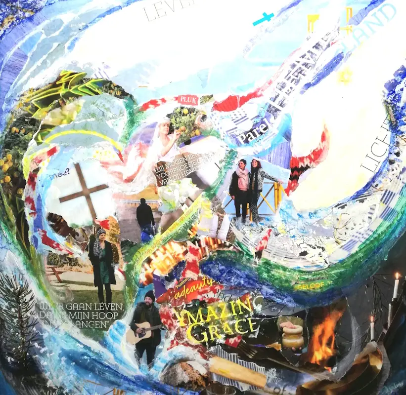 Het leven liep dusdanig dat ik in het medische wereldje terechtkwam. Zowel qua eigen gezondheid, als qua werk. God leidde mijn leven duidelijk ook in moeilijke omstandigheden was Hij daar en heeft wonderen gedaan.. Dat geloof ik. Hij geeft mij ook rust en Jezus heeft alles voor mij aan het kruis volbracht,. Hij houdt van de mens zoals deze is en dat ervaar ik ook. Van daaruit gaat HIj in je hart aan de slag om je te vormen naar Zijn beeld, Zo is Mijn schilderwerk nog niet perfect evenals mijn hart. Daar mag je je hele aardse leven aan bouwen met vallen en opstaan. Mooi vind ik dat. Geloof geef ik ook vorm in sommige collages en schilderijen. Geniet en bepaal zelf wat je erin wil zien.